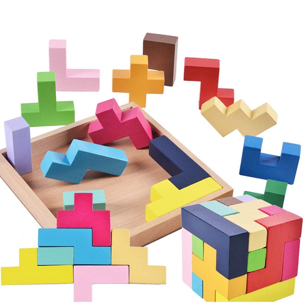 The pieces are often brightly colored, which not only adds visual appeal but also aids in color recognition. The design replicates the way Tetris pieces fit together, providing a tactile and visual puzzle experience.